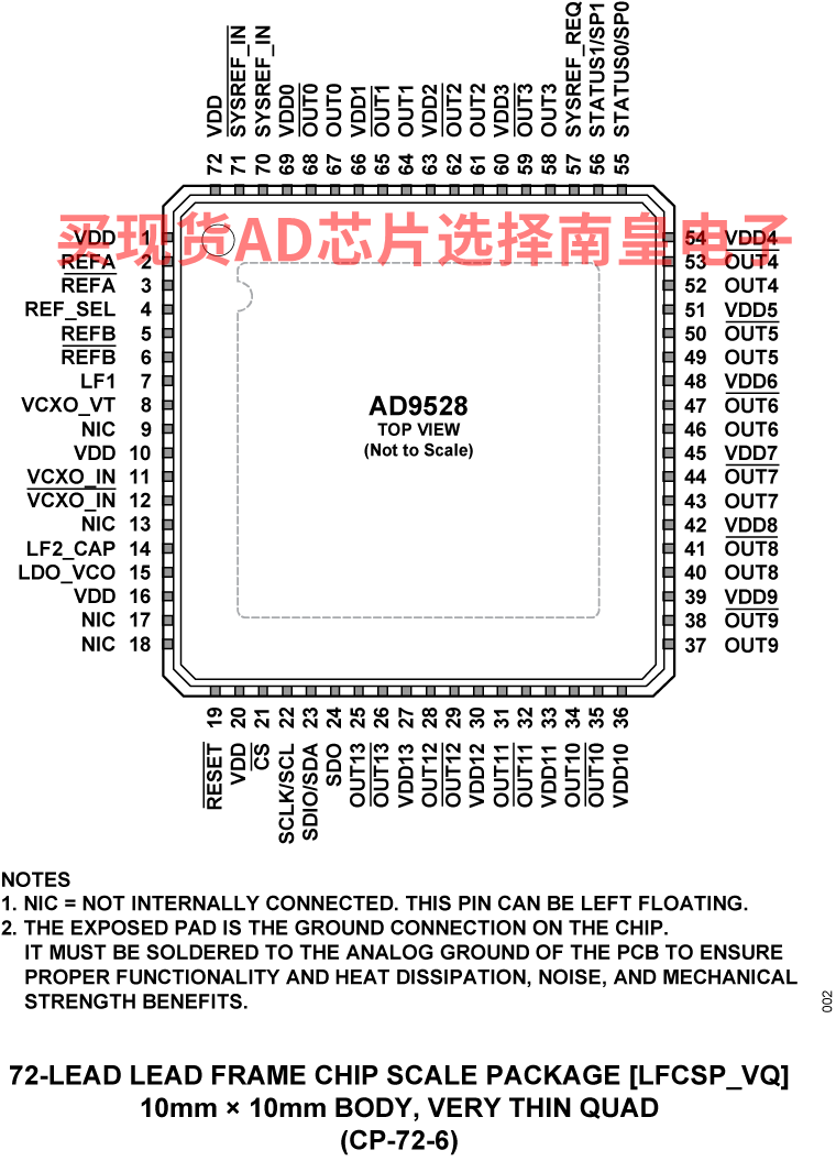 AD9528BCPZ,封装:72-Lead LFCSP (10mm x 10mm w/ EP),包装形式及数量:托盘,168,工作温度:-40 to 85C,AD官网报价:11.65(100-499个);9.9(1000+个)
