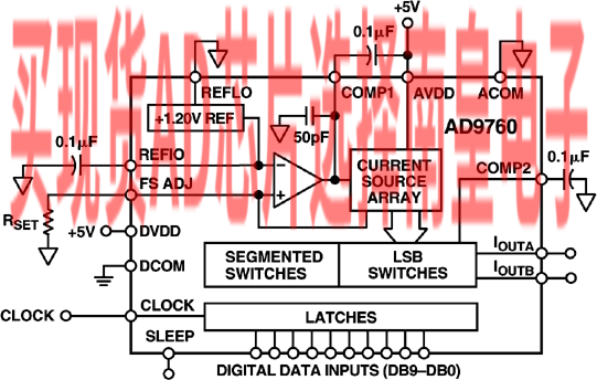 AD9760采用28引脚SOIC封装,额定温度范围为工业温度范围。