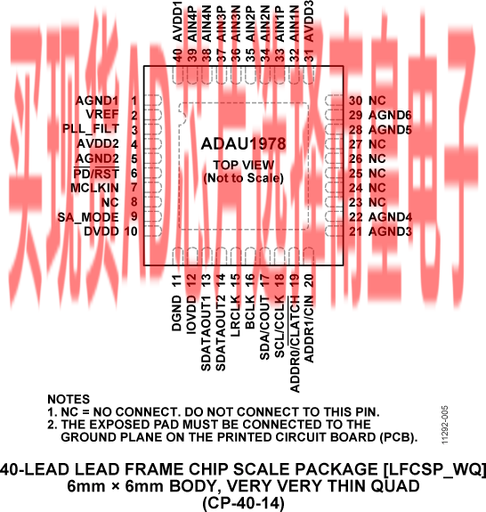 ADAU1978WBCPZ-RL,封装:40-Lead LFCSP (6mm x 6mm w/ EP),包装形式及数量:卷带,2500,工作温度:-40 to 105C,AD官网报价:3.65(100-499个);2.92(1000+个)
