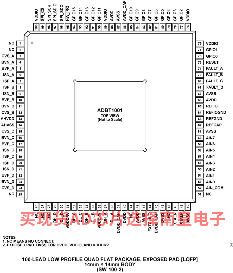 ADBT1001BSWZ,封装:100-Lead LQFP (14mm x 14mm w/ heatsink),包装形式及数量:托盘,90,工作温度:0 to 85C,AD官网报价:33.91(100-499个);28.74(1000+个)