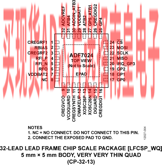 ADF7024BCPZ-RL,封装:32-Lead LFCSP (5mm x 5mm x 0.75mm w/ EP),包装形式及数量:卷带,5000,工作温度:-40 to 85C,AD官网报价:1.19(1000+个)