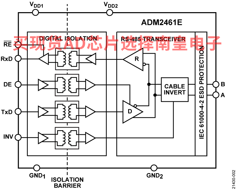 - 功能描述:500 kbps、5.7 kV RMS、信号隔离型、半双工 RS-485 接口收发器,具有 ±15 kV IEC ESD