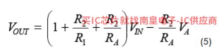 为了简化 RA对于值的搜索过程,假设采用双电源运行模式,有接地 REF 已知的双极调节电压 VA。输出电压可通过以下公式计算: