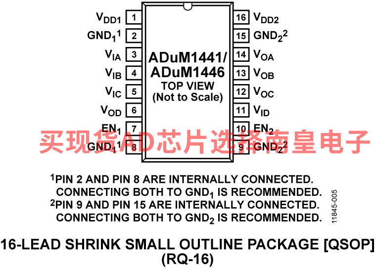 ADUM1446ARQZ-RL7,封装:16-Lead QSOP,包装形式及数量:卷带,1000,工作温度:-40 to 125C,AD官网报价:2.75(100-499个);2.38(1000+个)