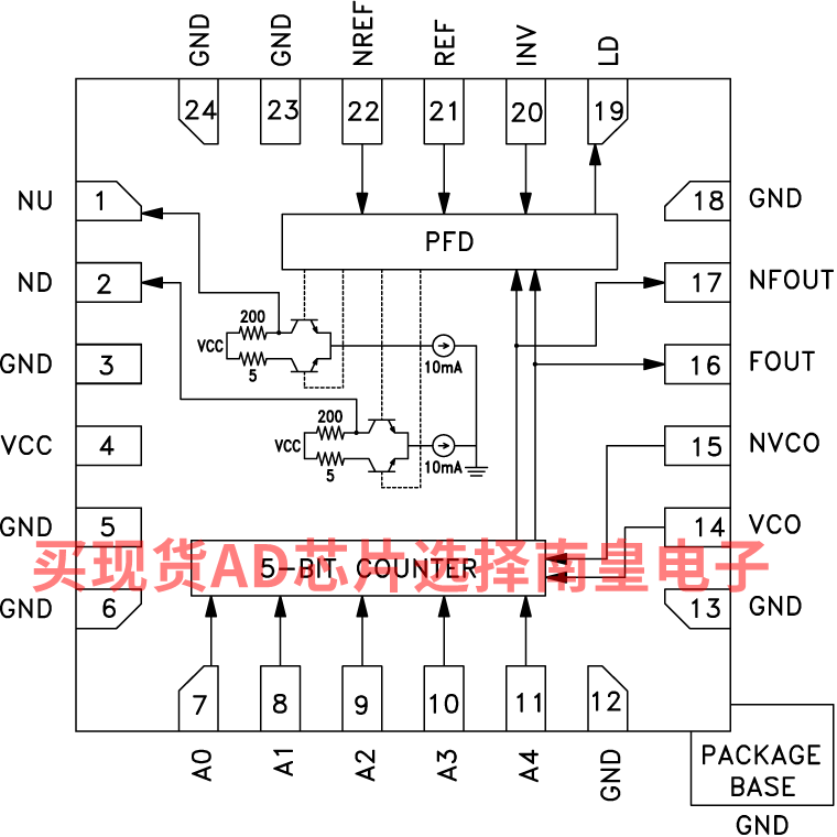 HMC4069LP4E,封装:24-Lead QFN (4mm x 4mm w/ EP),包装形式及数量:Cut Tape,500,工作温度:-40 to 85C,AD官网报价:71.62(100-499个)