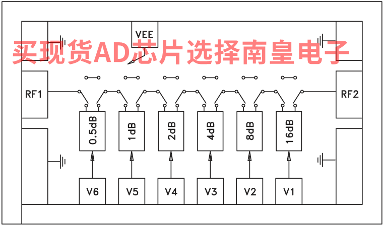 该器件允许用户通过在0 V至VEE之间切换的六个并行控制输入对衰减状态进行编程设定。