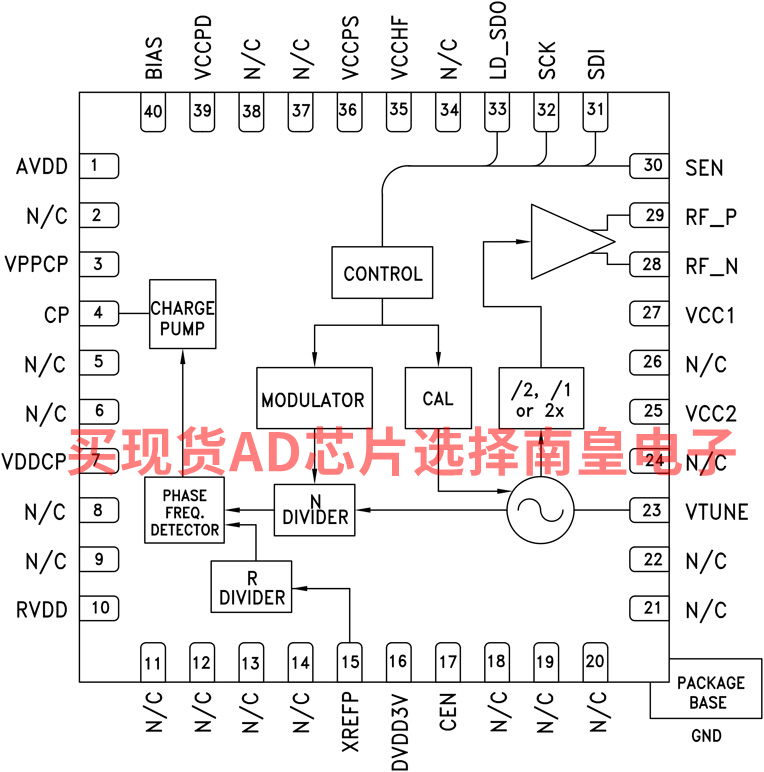 HMC821LP6CE,封装:40-Lead QFN (6mm x 6mm w/ EP),包装形式及数量:Cut Tape,500,工作温度:-40 to 85C,AD官网报价:10.79(100-499个)