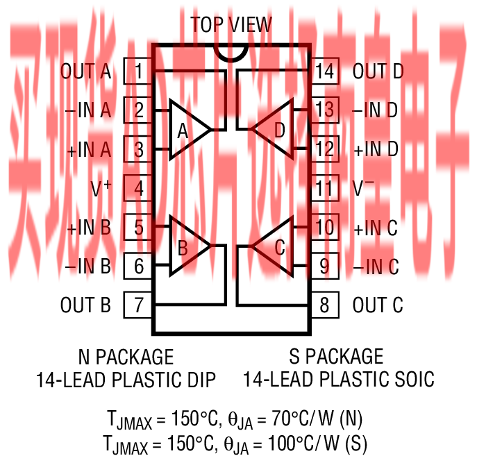 LT1254CN#PBF,封装:14-Lead PDIP (Narrow 0.3 Inch),包装形式及数量:管装,25,工作温度:0 to 70C,AD官网报价:5.16(100-499个);5.06(1000+个)