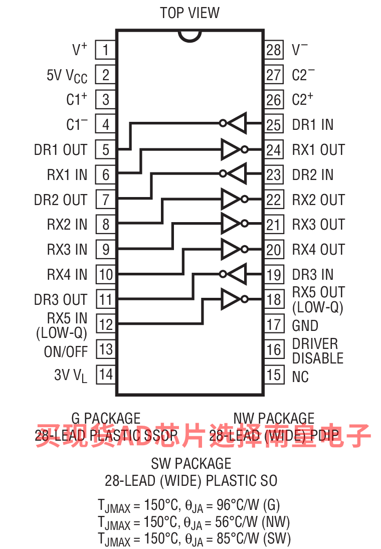 LT1330CNW#PBF,封装:28-Lead PDIP (Wide 0.6 Inch),包装形式及数量:管装,14,工作温度:0 to 70C,AD官网报价:4.54(100-499个);4.49(1000+个)
