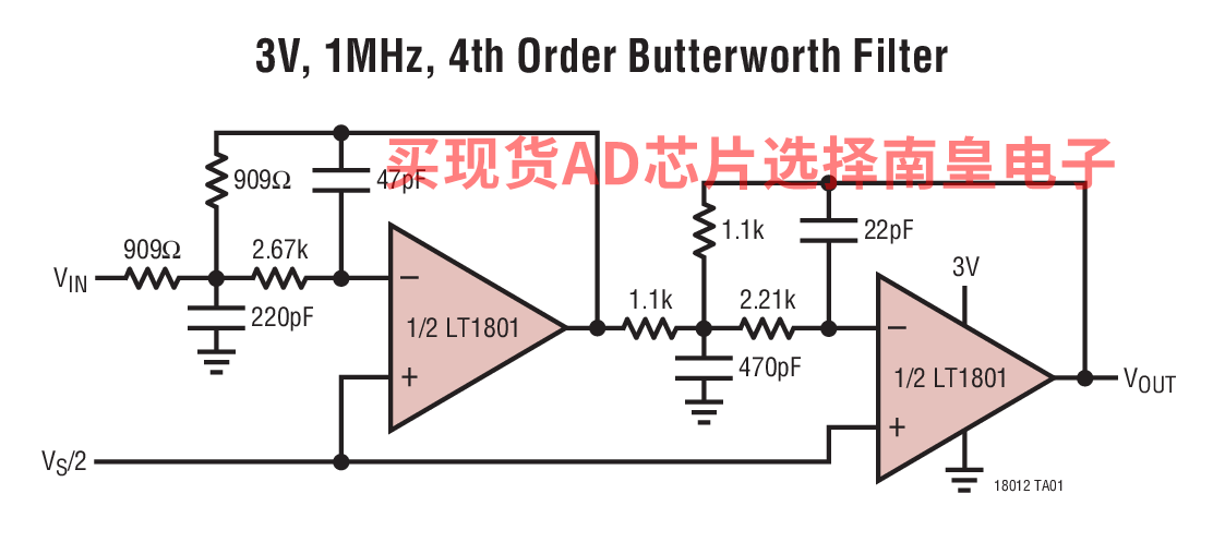 LT1801 / LT1802 是双通道 / 四通道低功率、高速、轨至轨输入和输出运算放大器,具有卓越的 DC 性能。与其他具有相似带宽的器件相比,LT1801 / LT1802 拥有减低的电源电流、较低的输入失调电压、较低的输入偏置电流和较高的 DC 增益。
