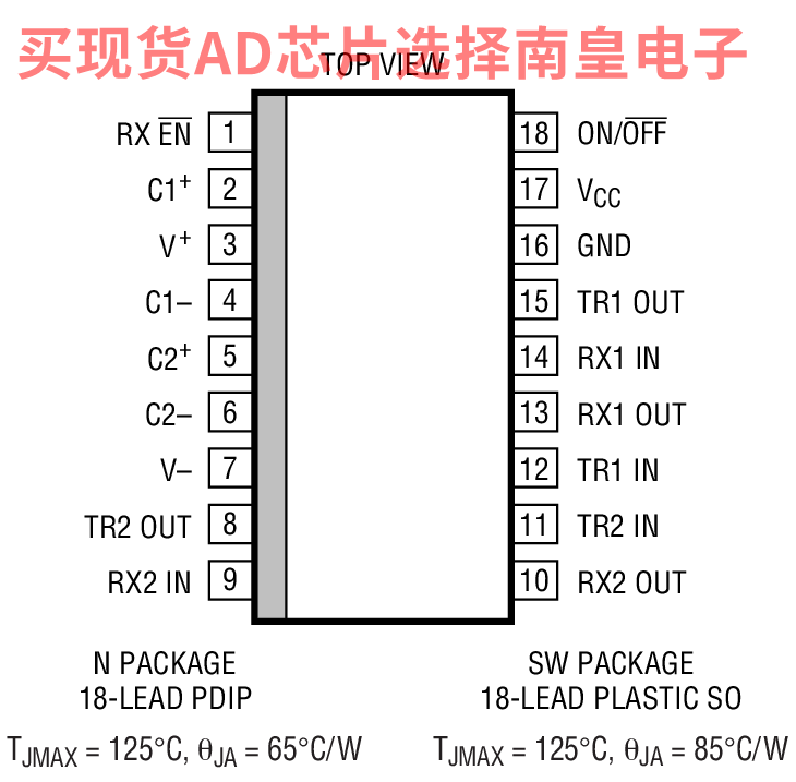 LTC1384IN#PBF,封装:18-Lead PDIP (Narrow 0.3 Inch),包装形式及数量:管装,20,工作温度:-40 to 85C,AD官网报价:4.3(100-499个);3.9(1000+个)
