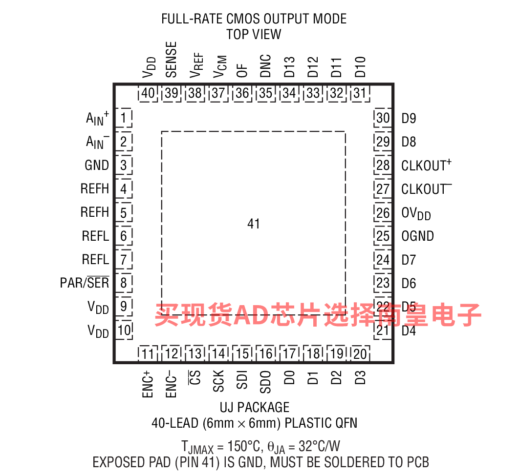 LTC2256CUJ-14#PBF,封装:40-Lead QFN (6mm x 6mm x 0.75mm w/ EP),包装形式及数量:管装,61,工作温度:0 to 70C,AD官网报价:21.25(100-499个);17.47(1000+个)