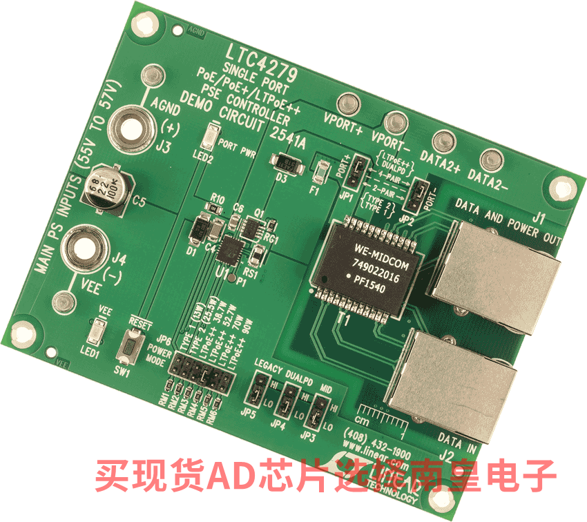 DC2541A:LTC4279 演示板 | 单端口 PoE/PoE+/LTPoE++ PSE 控制器(高达 123W)