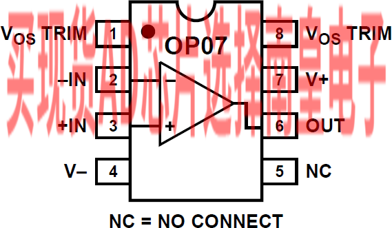OP07提供环氧树脂8引脚PDIP和8引脚SOIC两种封装。它是725、108A和OP05放大器的直接替代产品;去除741型的零值电位计,它也可以直接替代741型放大器。关于改进特性产品,请参考OP177或OP1177。关于陶瓷DIP和TO-99封装以及标准微电路(SMD)版本,请参考OP77。
